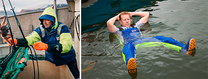 Stormline tilbyr verne- og flytebuksen «Crew 662» som skal holde en person flytende ved fall over bord. Buksen er EN393 godkjent og har dobbelt lag PVC i front og trippel i kne, samt innsydde kneputer.