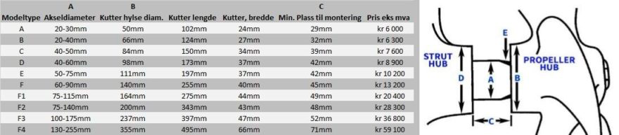 Bestilling gjøres hos direkte til leverandør Duwel Group på e-post: tommy@duwelgroup.com. Noen mål (A, B, C, D) må oppgis ved bestilling basert på figuren og tabellen vist nedenfor. Har man spørsmål til bestilling eller installasjon kan samme e-post benyttes. Kontaktperson hos Havtrygd er Bjarte om det skulle være noe generelle spørsmål rundt propellkniver eller støtten.